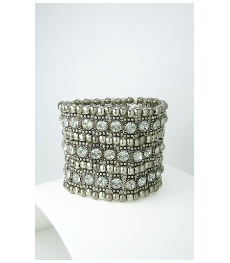 Hermoso brazalete bohemio de color plateado con finos cristales de murano
